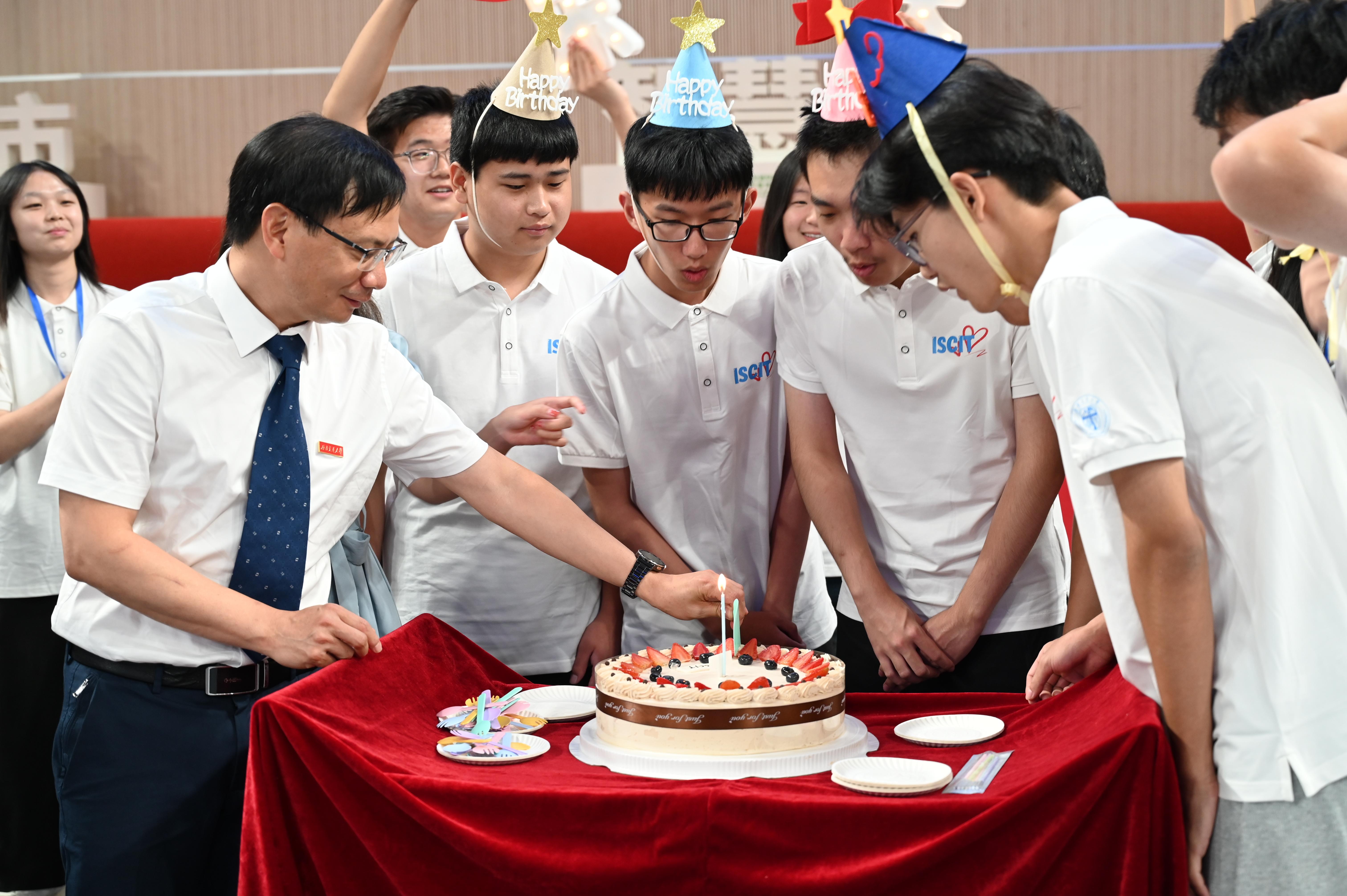 在全体合唱校歌后,开学典礼还上演“彩蛋”,开学典礼日恰是学院6位新生的生日,学院特地准备了生日蛋糕,全场新生同唱一首歌,同庆“新生”梦,为开学典礼画上圆满句号,同步开启自己崭新的人生旅程!